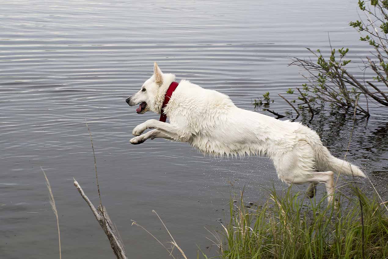 Novas bror Ymer hoppar rätt ut i plurret. Nova och alla hennes syskon älskar att bada liksom deras mamma Sally gjorde.