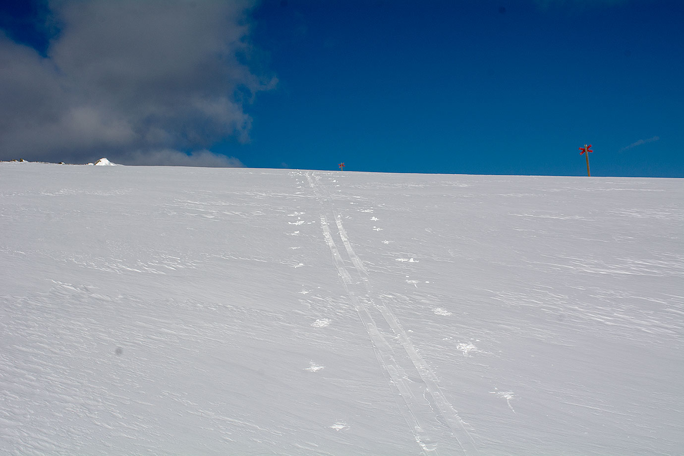 Spår av skidor på fjället, det är väl verkligen vintriga spår?