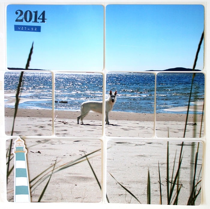 Jag har fastnat för att göra en stor bild på förstasidan i mina Project Life-album, speciellt om jag har ett fint foto så blir det väldigt effektfullt. Eftersom det inte ryms ett helt år i ett album så bestämde jag mig i år för att dela året på hälften, vilket innebar att brytningen blev under sommaren. Så här gjorde jag förstasidan i årets andra album.