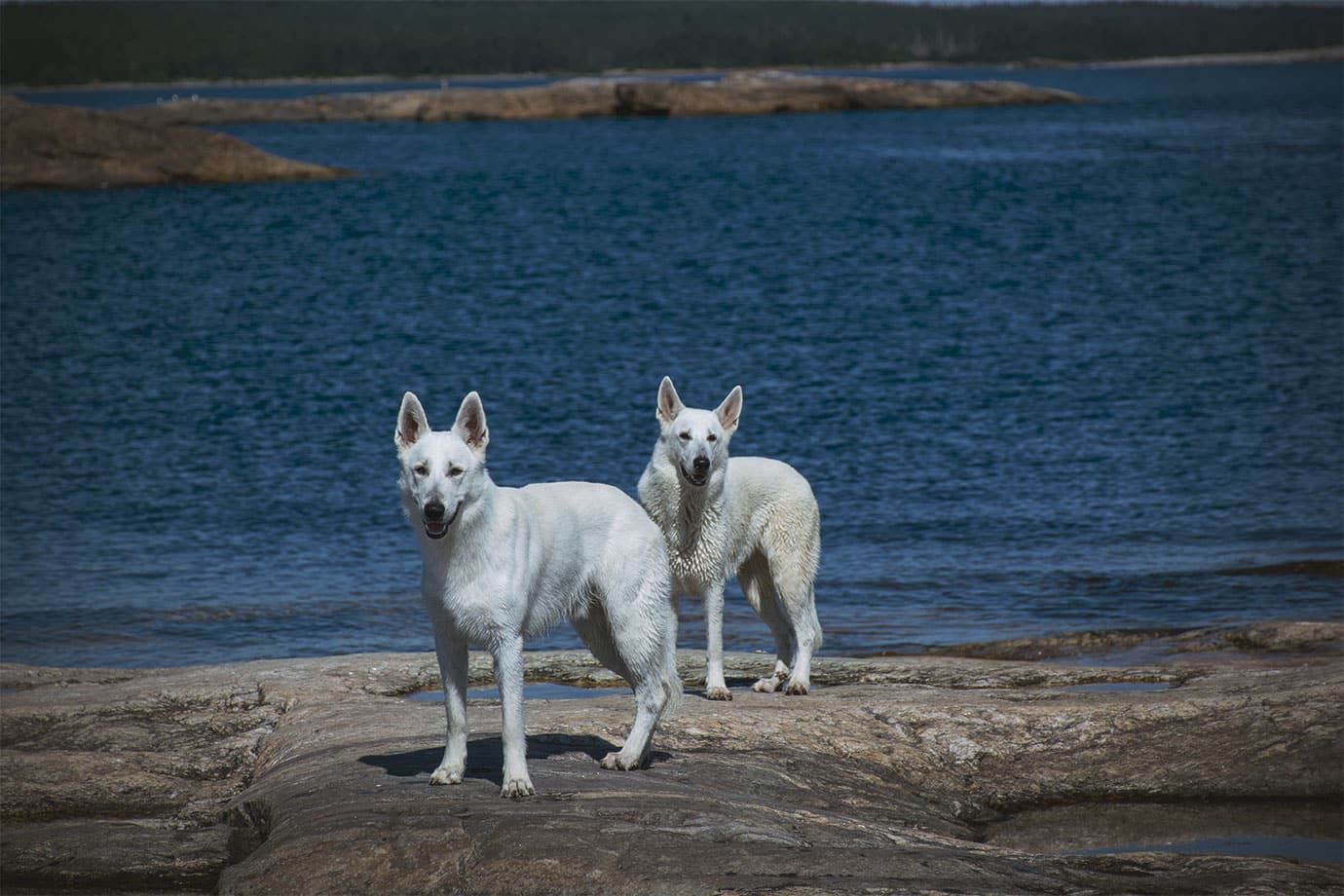 Vilken härlig miljö, kala klippor, hav och vacker blå himmel! Ger mig en frihetskänsla, jag älskar de kala klipporna! Kan tänka mig att hundarna gillade att skutta runt där.